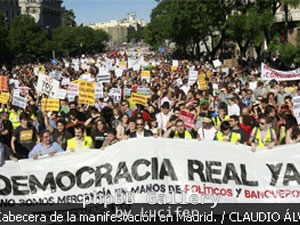 Οι δημοσιογράφοι παρατηρούν αμήχανοι και τα κράτη παρακολουθούν με έκδηλη ανησυχία. Το «κίνημα των αγανακτισμένων» διαδίδεται με «ταχύτητες μεγάλες» μέσω του Διαδικτύου. Οι πολίτες συντονίζονται και συνομιλούν. Πρόκειται για δύο δραστηριότητες οι οποίες «ενοχλούν» αφάνταστα τους μηχανισμούς διακυβέρνησης. Τα θεσμικά κόμματα στην Ιβηρική δεν συμμετέχουν αλλά διερωτώνται και προφανώς ετοιμάζουν την δική τους «διείσδυση» αντιλαμβανόμενα πώς αυτή η πολιτική δυναμική μπορεί και να είναι «χρήσιμη» αν την ενσωματώσουν αλλά κατανοούν πώς αν αυτή δυναμική συνεχιστεί τότε ενδεχομένως να αποβεί και μοιραία για τα πολιτικά συστήματα που εκπροσωπούν.