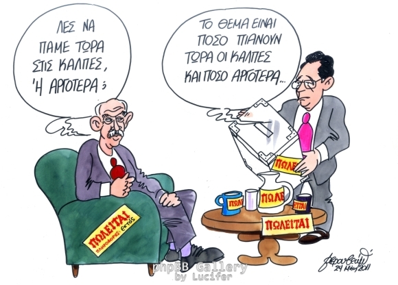 Ερώτηση απλή αδαούς: Εφόσον ο λογαριασμός δεν έβγαινε, κάτι γνωστό από τις αρχές του 2010, γιατί δεν μπήκαν οι ένθερμοι θιασώτες τέτοιων λύσεων, στην ιδιωτικοποίηση των ΔΕΚΟ κ.ά. πέρυσι, όπου η αξία τους ήταν θεαματικά υψηλότερη από ότι φέτος; Πόσο φθηνότερα θα πουλήσουμε φέτος τις μετοχές των εισηγμένων στο χρηματιστήριο ΔΕΚΟ –και όχι μόνο– υπό τη διαχείριση της τρόικας πια; Ποιος θα είναι ο κύριος ωφελημένος, που καρτερικά περίμενε τον προαναγγελθέντα θάνατο των εταιριών του Δημοσίου;