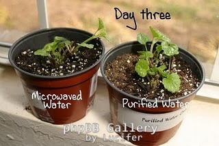 Στη συνέχεια, μετά την ψύξη του, χρησιμοποίησε το νερό σε δύο ίδια φυτά για να δει αν θα υπήρχε καμία διαφορά στην ανάπτυξη μεταξύ του κανονικού βρασμένου νερού και του βρασμένου νερού σε φούρνο μικροκυμάτων. Σκέφτηκε ότι η δομή ή η ενέργεια του νερού μπορεί να αλλοιώνεται από τον φούρνο μικροκυμάτων.