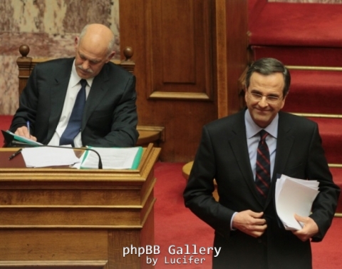 Από την άλλη ο Γιώργος Παπανδρέου, κατά την χθεσινή συνεδρίαση της Ολομέλειας επιτέθηκε στη ΝΔ για την άρνηση της να συναινέσει στο Μεσοπρόθεσμο Πρόγραμμα συμπληρώνοντας ότι:«Σε μία εποχή κρίσης το κόμμα της αξιωματικής αντιπολίτευσης ταυτίζεται με όσους ποντάρουν στην αποτυχία της Ελλάδας». Επιπλέον, επανέλαβε πως το οικονομικό μανιφέστο της ΝΔ με τίτλο «Ζάππειο 2» έχει απορριφθεί από την Ευρώπη.
